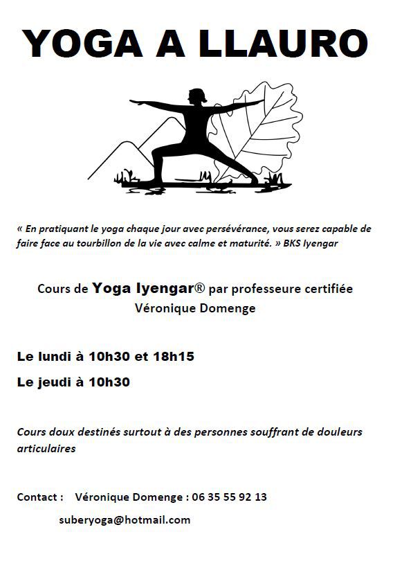 A Llauro, des cours de gym douceur et bien être à partir de 50 ans ont lieu à la salle des fêtes tous les mardi à 11h.